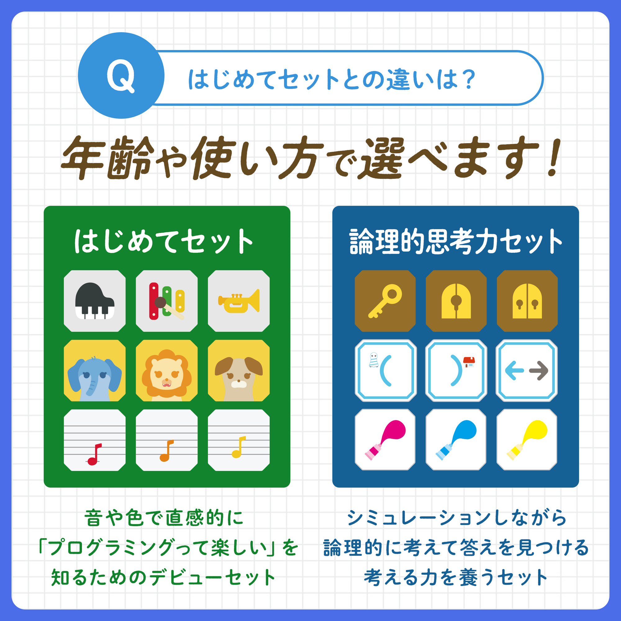 ●小さい子供や初めてでも楽しく始められるよう、楽しさを重視したパネルが入っています。